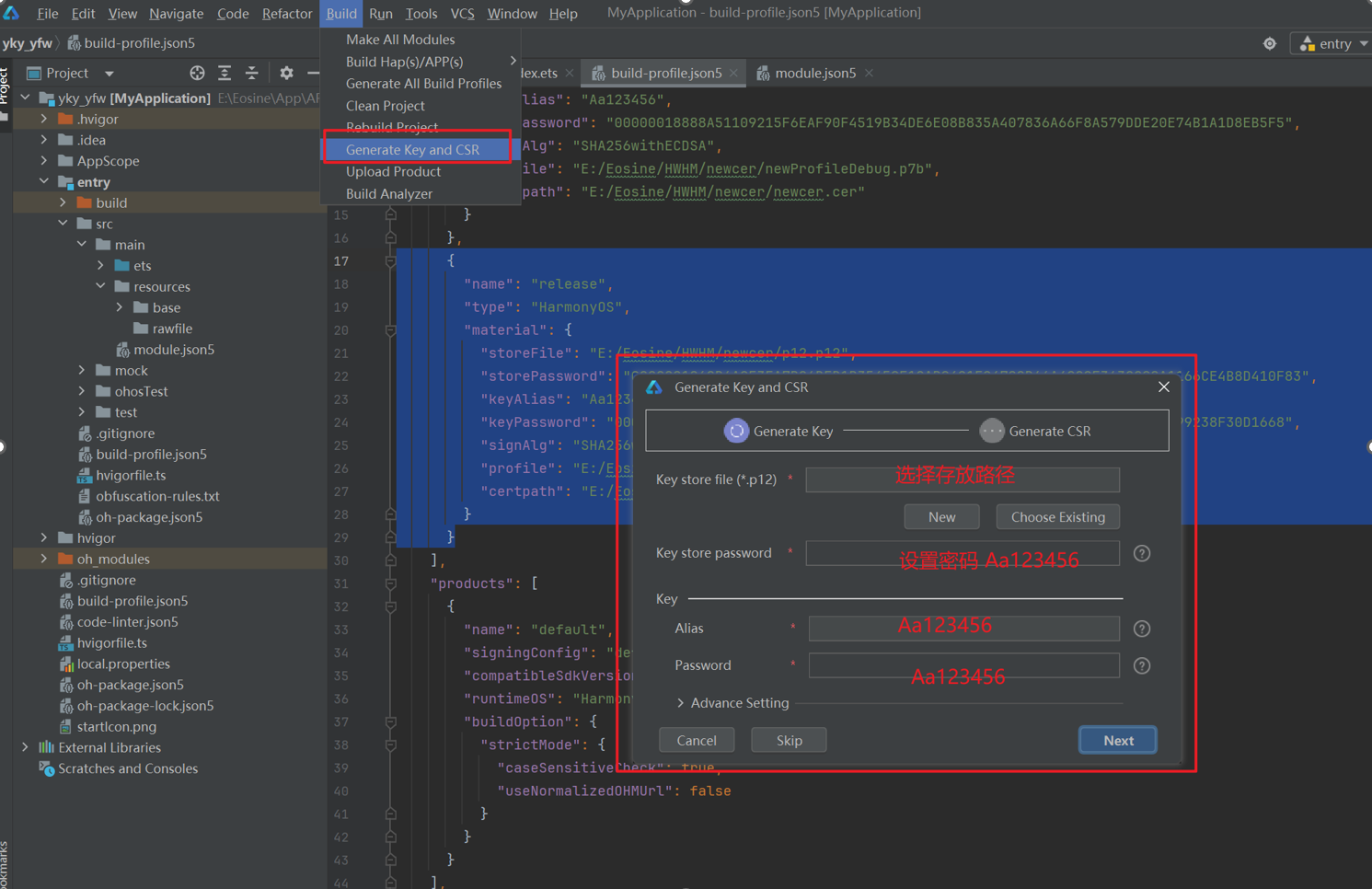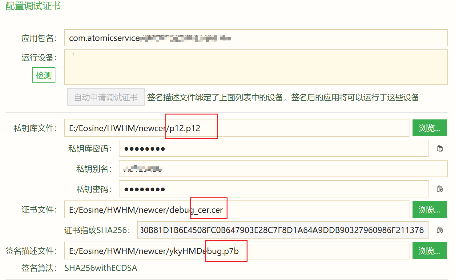- p12:使用华为开发者工具DevEco 即可创建该证书,该证书不区分开发证书和生产证书。