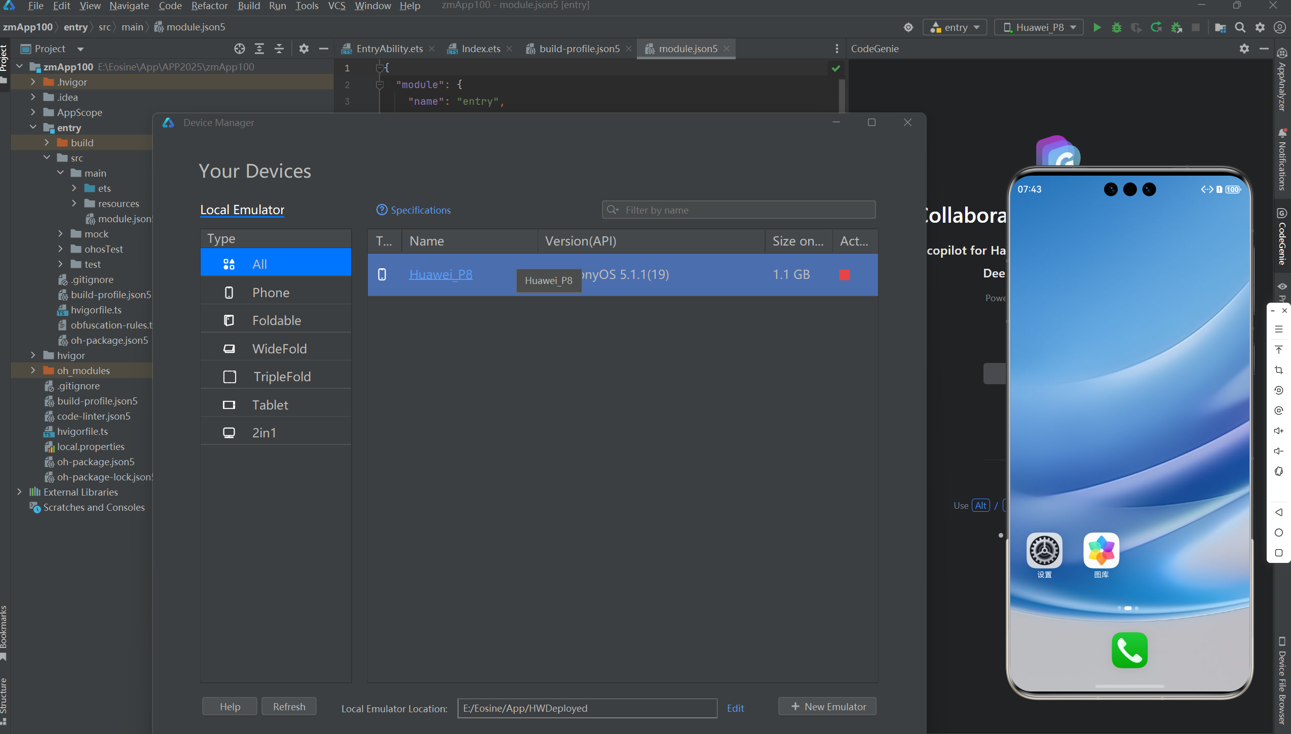 如果是window系统,需要开启虚拟化Hyper-V 、window虚拟机监控平台的相关配置,如果出错了也会有对应的提示,不得不说DevEco工具还是非常人性化的。赞一个!
