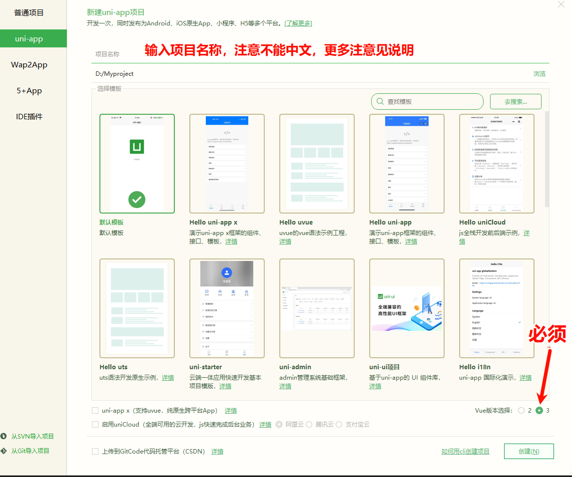 - 填写项目名称(建议英文或数字,不要使用中文)