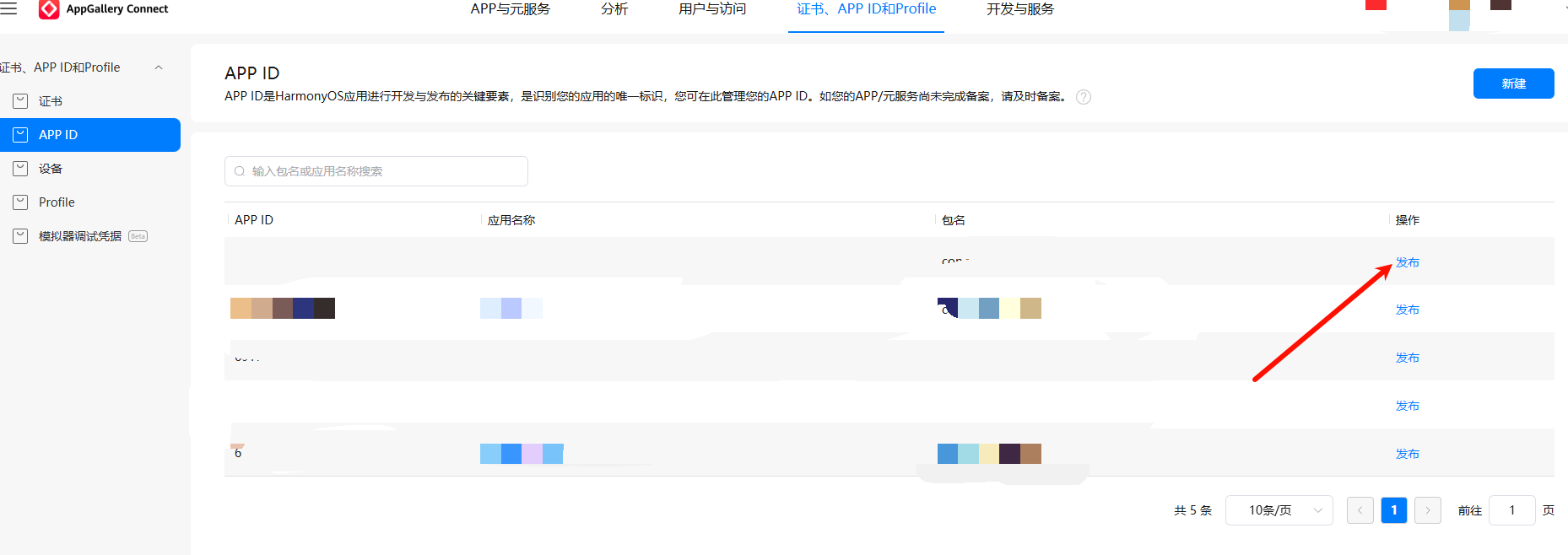 - 华为 AGC 平台,【证书、APP ID 和 Profile】→【APPID】→【发布】。