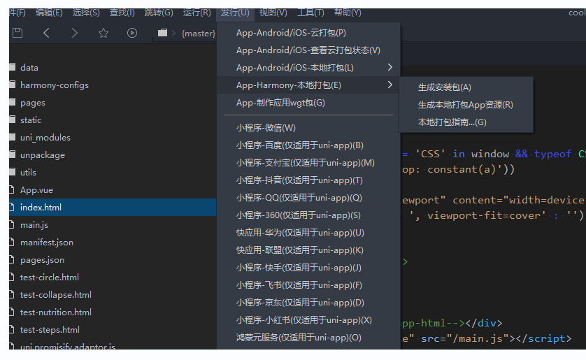 在这一章节中,将讲述使用 uni-app 开发鸿蒙 App 的前置工作,供开发者参考。