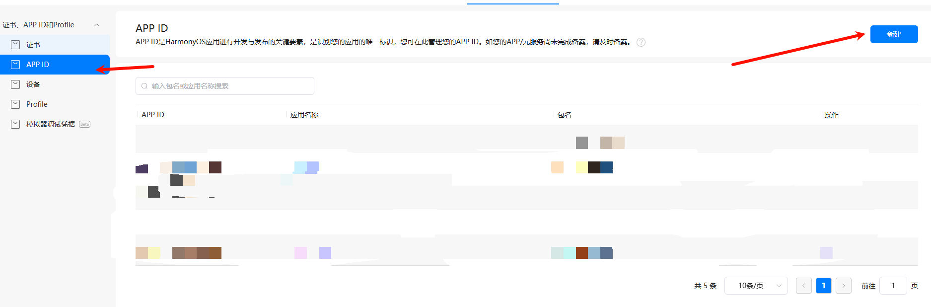 - 华为 AGC 平台,【证书、APP ID 和 Profile】→【APP ID】选择【新建】。