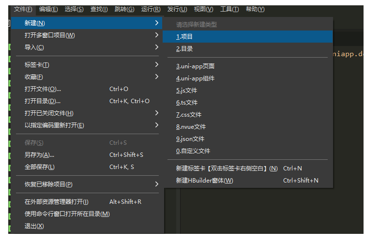 - 打开 HBuilder X:点击左上角【文件】→【新建】→【uni-app】→【uni-app 项目】