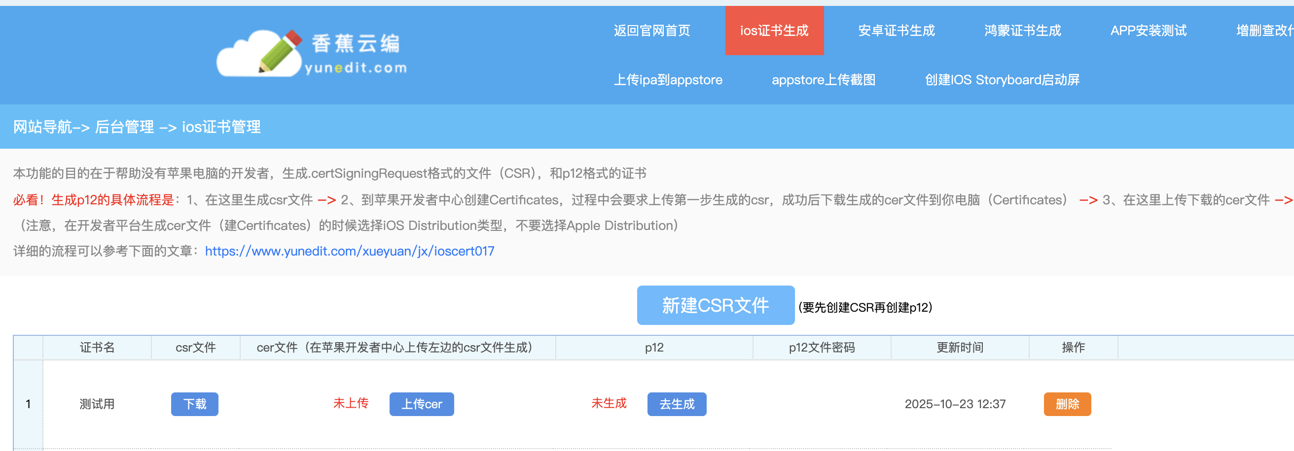 (1)在香蕉云编生成CSR文件