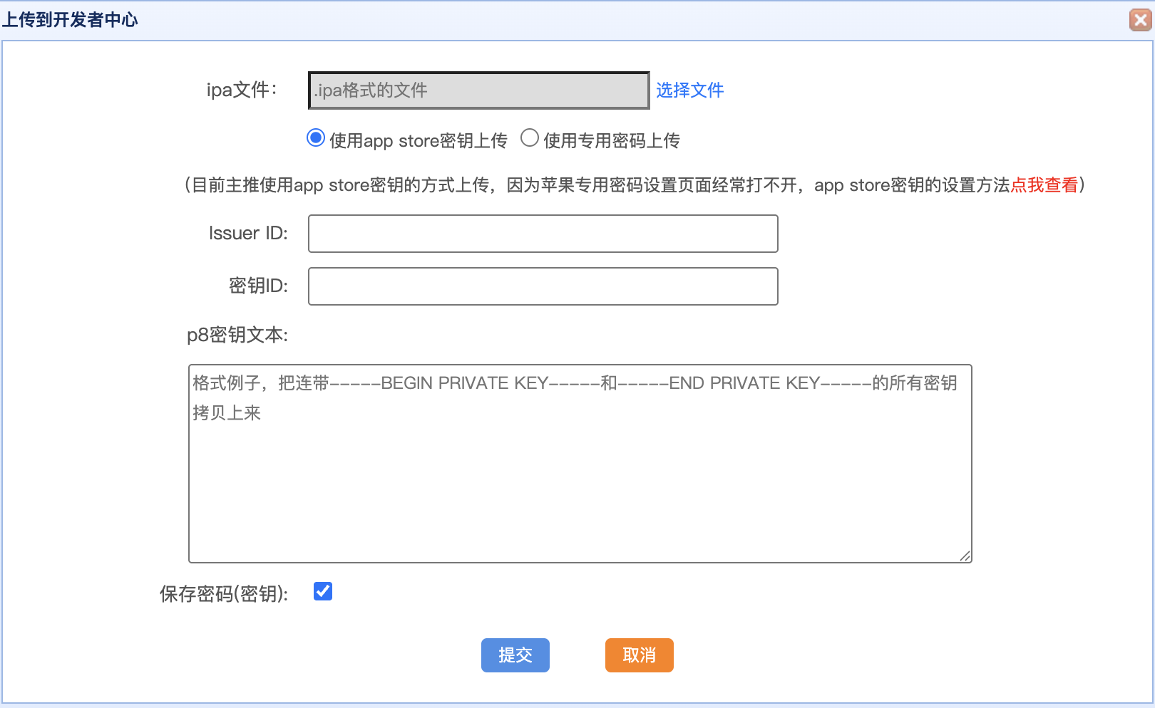 可能,现在苹果不建议再使用专用密码上传了吧。不过可以使用香蕉云编这个工具来上传,它支持使用密钥来上传,这个密钥在app store就能设置,不需要去苹果的appleid子站设置。