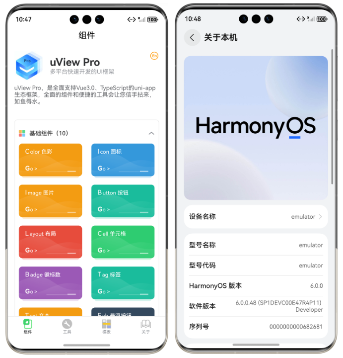 近期在鸿蒙6.0系统上运行uView Pro源码,效果还不错,如下: