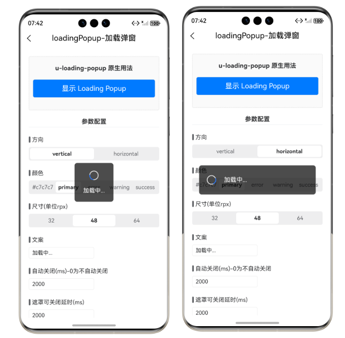 <u-loading-popup v-model="loading" direction="horizontal" text="正在加载..." />