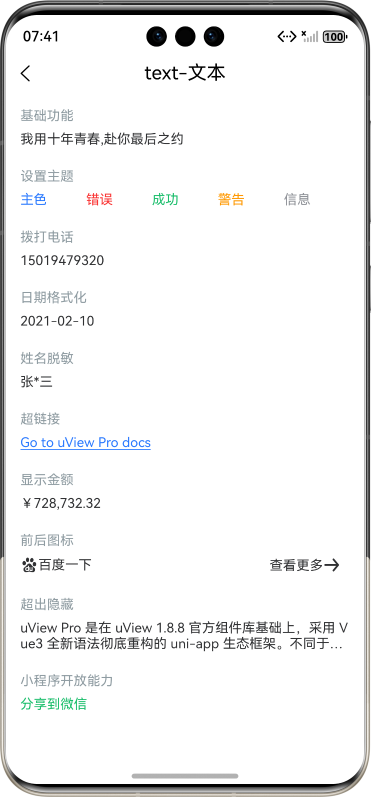 更多用法请参考文档:https://uviewpro.cn/zh/components/text.html