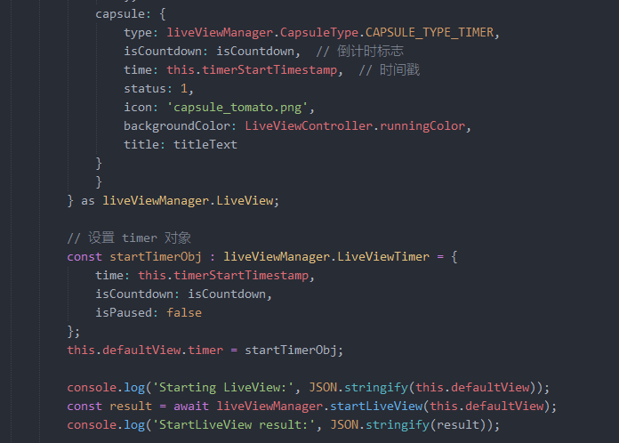 index.uts是真正对接鸿蒙原生 LiveView API 的地方,比如startLiveView方法里,会先检查设备是否支持实况窗,再调用鸿蒙的LiveViewManager.start()启动,还加了定时更新数据的逻辑,默认 10 秒更一次。