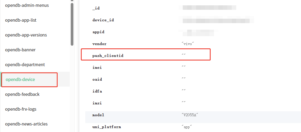 配置后重新运行重启app后在云服务器的设备表(opendb-device)中要能查询到push_clientid才能实现指定用户推送,否则都是全量用户推送