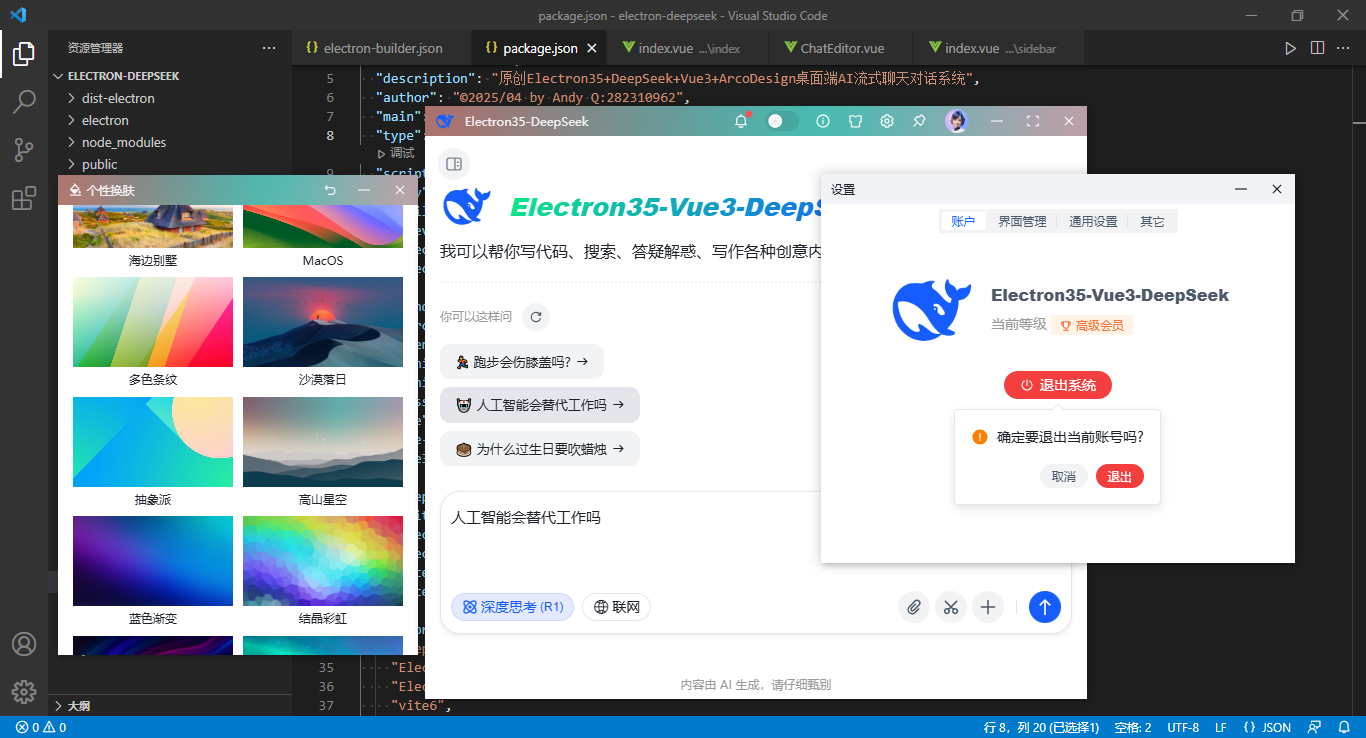 Tauri2.8+Vue3聊天系统|vite7+tauri2+element-plus客户端仿微信聊天程序 Tauri2-Vite7Admin客户端管理后台|tauri2.9+vue3+element-plus后台系统 Electron38-Vue3OS客户端OS系统|vite7+electron38+arco桌面os后台管理 electron38-admin桌面端后台|Electron38+Vue3+ElementPlus管理系统 Electron38-Wechat电脑端聊天|vite7+electron38仿微信桌面端聊天系统 最新版uniapp+vue3+uv-ui跨三端短视频+直播+聊天【H5+小程序+App端】 最新版uni-app+vue3+uv-ui跨三端仿微信app聊天应用【h5+小程序+app端】 原创uniapp+vue3+deepseek+uv-ui跨端实战仿deepseek/豆包流式ai聊天对话助手。 vue3-webseek网页版AI问答|Vite6+DeepSeek+Arco流式ai聊天打字效果 uniapp-vue3-os手机oa系统|uni-app+vue3跨三端os后台管理模板 Flutter3-MacOS桌面OS系统|flutter3.32+window_manager客户端OS模板 最新研发flutter3.27+bitsdojo_window+getx客户端仿微信聊天Exe应用 最新版Flutter3.32+Dart3.8跨平台仿微信app聊天界面|朋友圈 Electron35-DeepSeek桌面端AI系统|vue3.5+electron+arco客户端ai模板