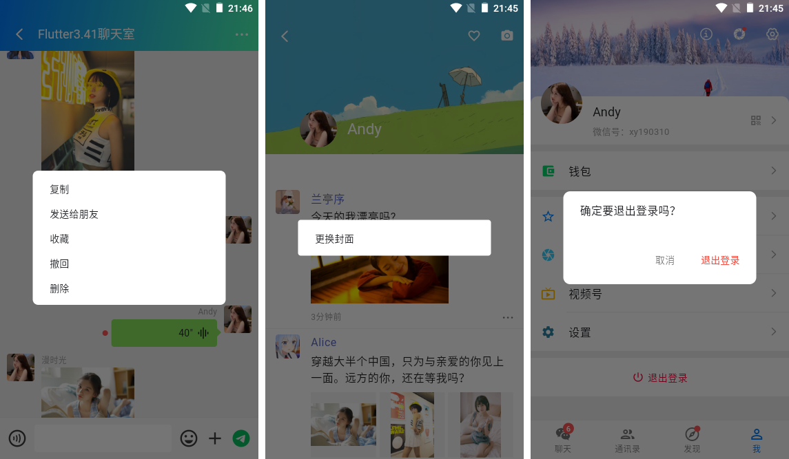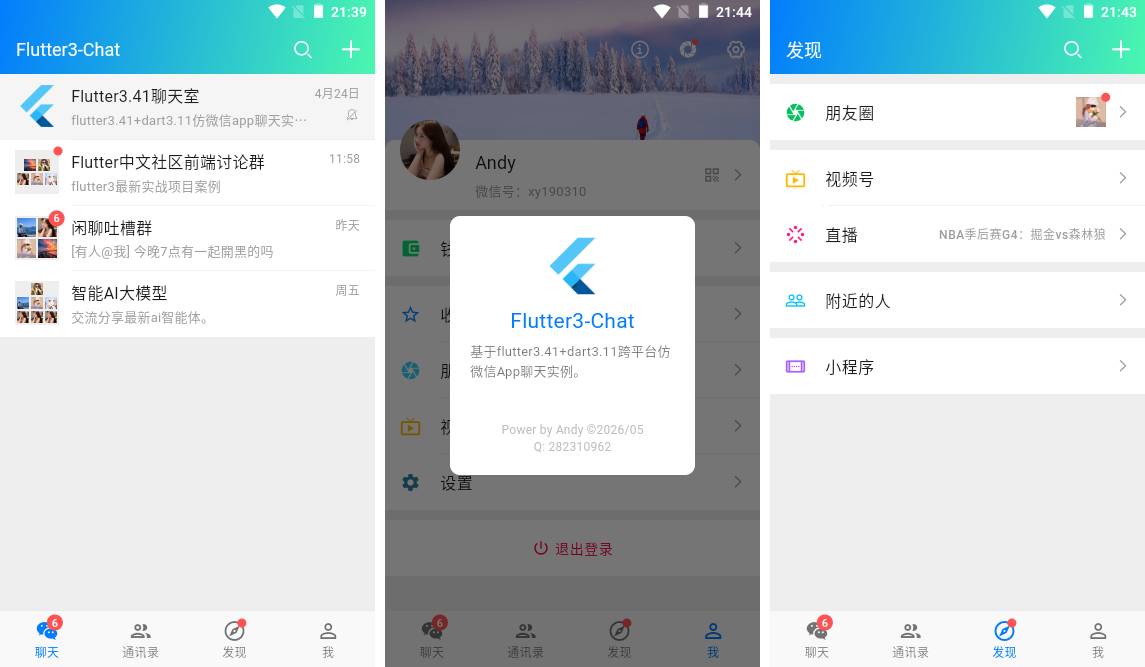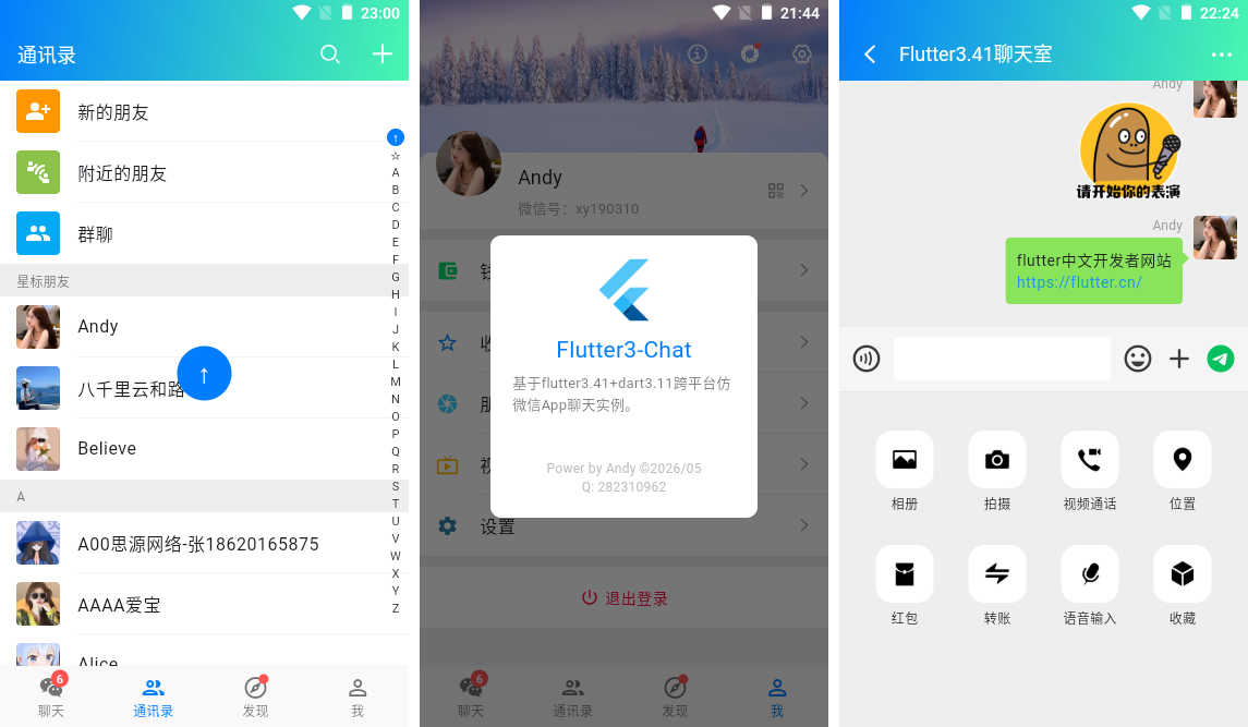 最新版Flutter3.41+Dart3.11跨平台仿微信app聊天界面|朋友圈