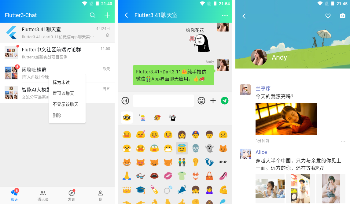 最新版Flutter3.32+Dart3.8跨平台仿微信app聊天界面|朋友圈