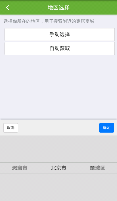 场景?就是一个提供用户选择地区的按钮,点击后打开一个新窗口,窗口包含两个按钮,一个事手动选择,及调用三级联动的那个。