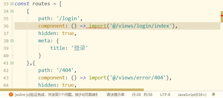 component: () => import('@/views/login/index') 被标记红线,任务栏提示错误