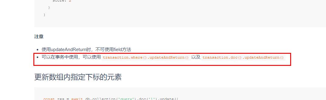 在文档中官网给出的updateAndReturn方法是可以在事务中使用的,但本地运行方法给出如果图的错误提示,但同样的代码使用update方法是没有问题的。