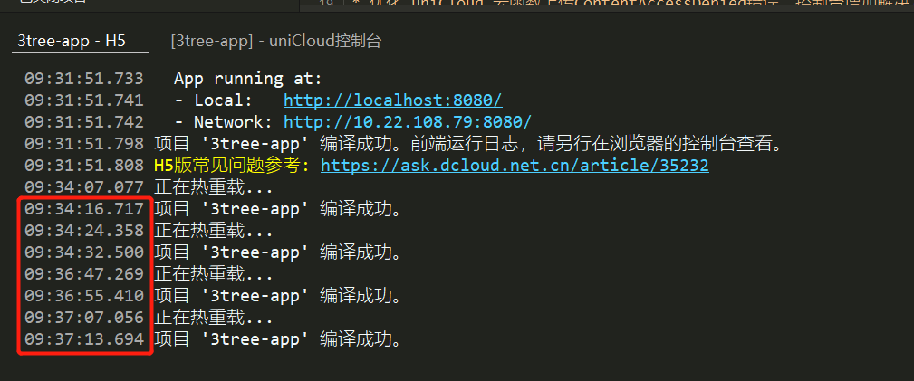 项目较大,运行到H5端热重载时间变慢,从3.2.12的上一个版本开始,每次保存完,需要7、8秒才能编译成功刷新页面,以前保存完,秒刷新,现在修一点代码保存,需要过一段时间才能刷新页面