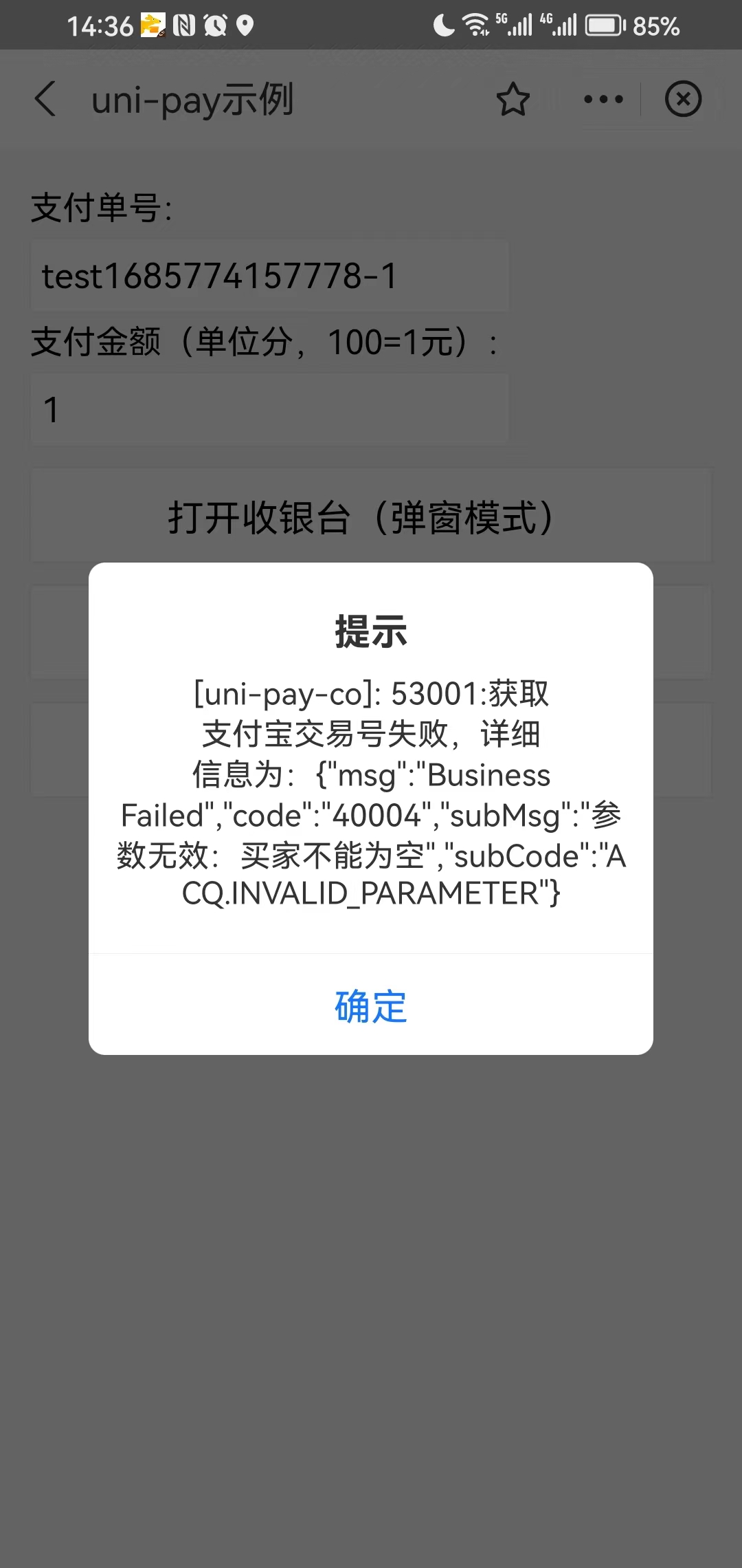 回复 DCloud_uniCloud_VK: h5没问题可以支付成功。