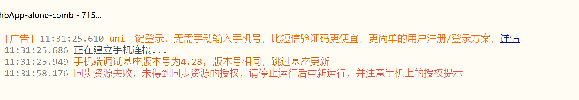 运行标准基座 同步资源失败,未得到同步资源的授权,请停止运行后重新运行,并注意手机上的授权提示