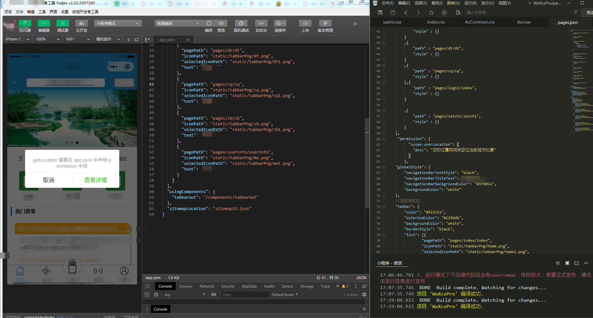 - 关闭微信开发者工具之后 重新编译到微信开发者工具中 会提示 缺少 permission 配置