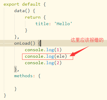 用编辑器创建任意一个空项目,在onLoad()里console.log(ele),ele未定义,再后面console.log(2),然后运行到微信小程序