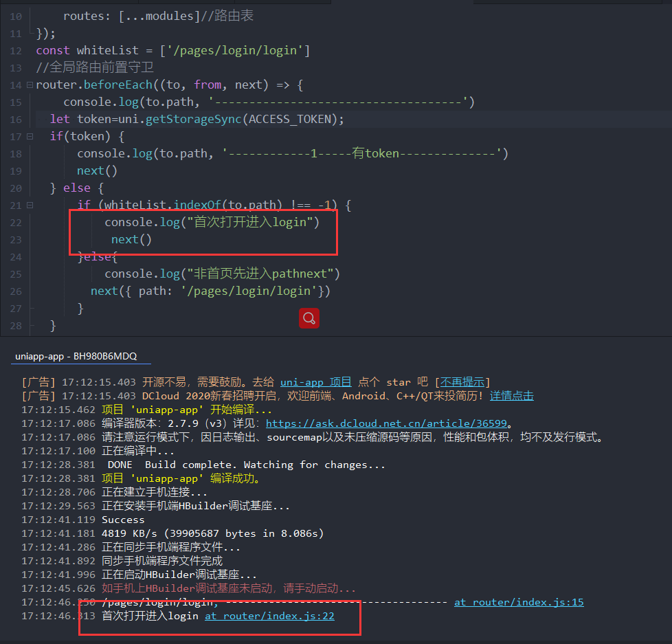 使用uni-simple-router路由卫士拦截 连接安卓手机调试登录后前置路由next()无效无法跳转页面