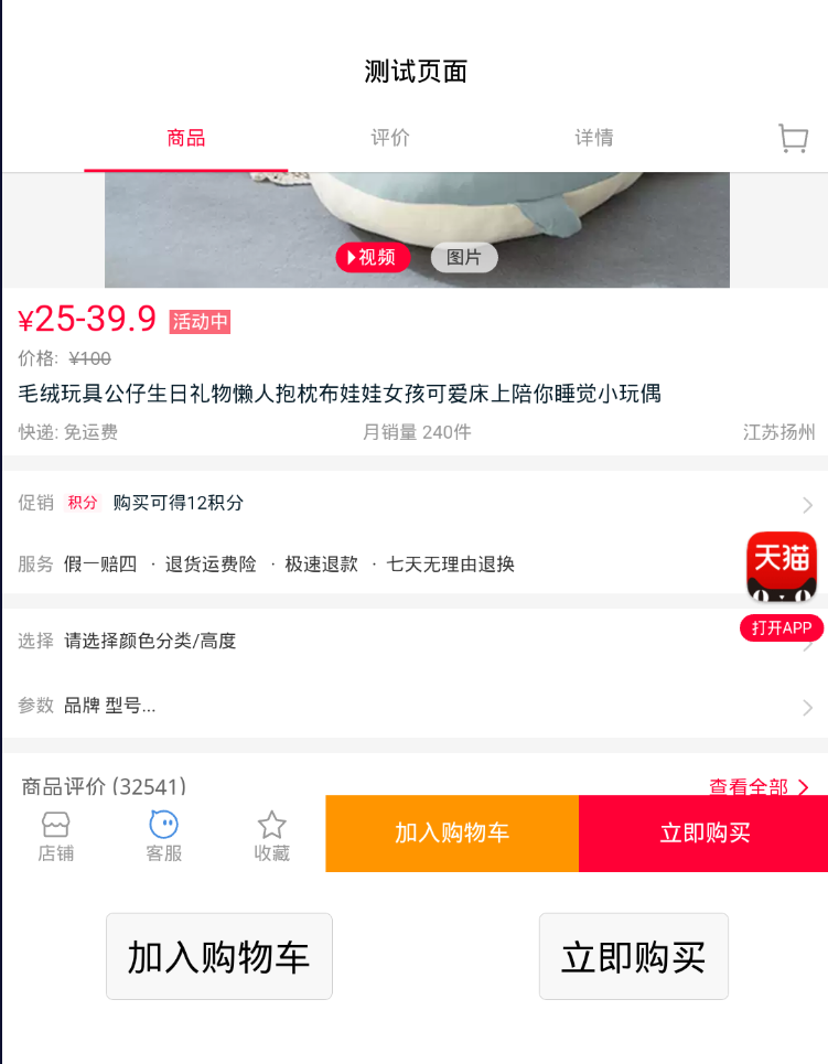 ,发现底部已经有了加入购物车和购买按钮;现在需要把下面这一部分替换成自己的加入购物车和购买功能,有没有办法能实现?谢谢
