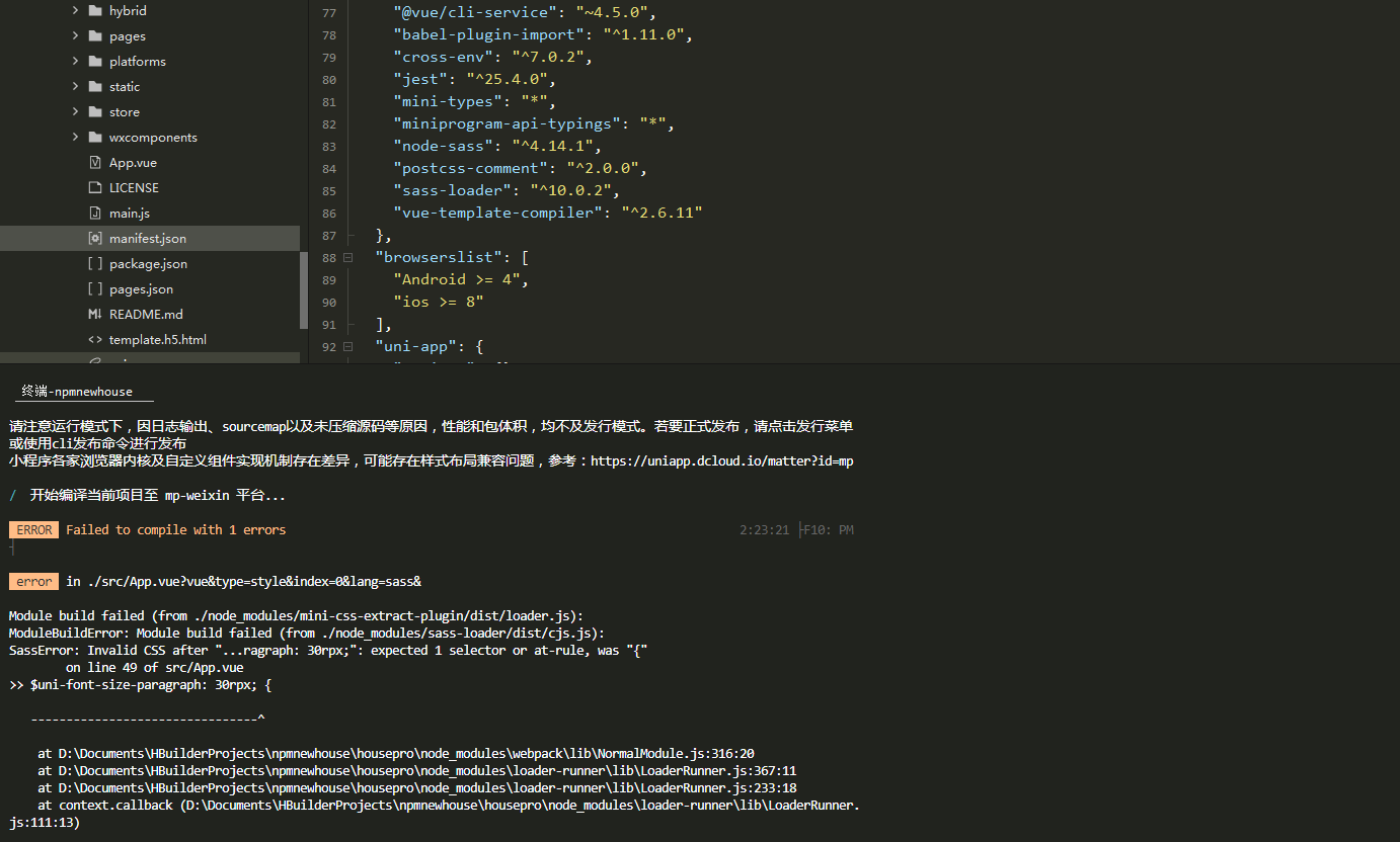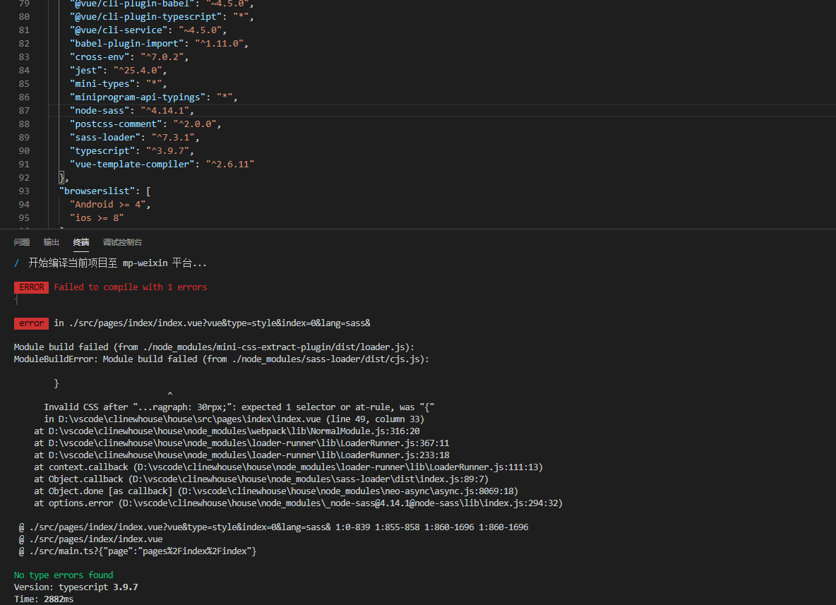 uniapp用cli创建TS项目,安装sass,运行时报错。