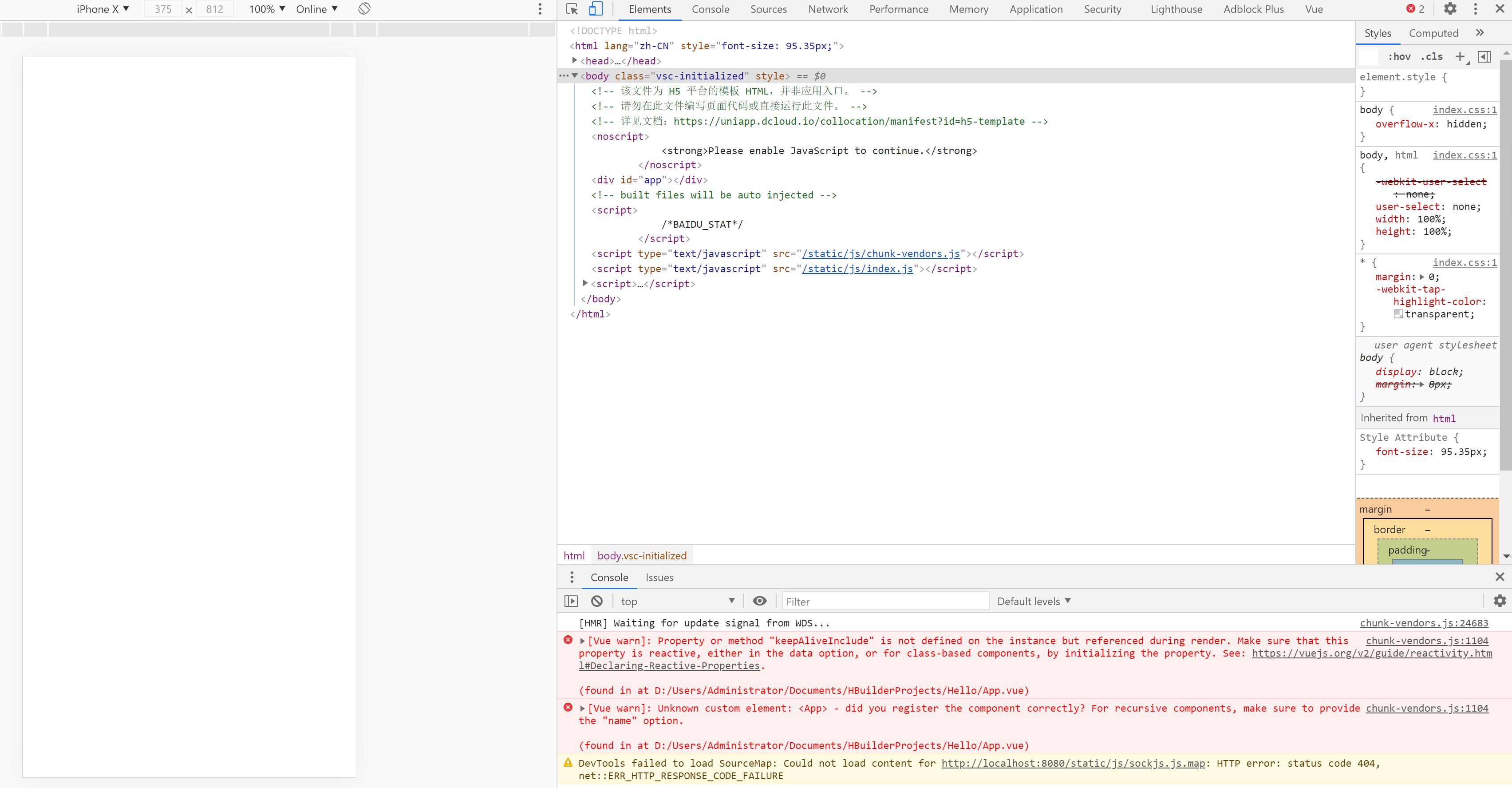 (found in at D:/Users/Administrator/Documents/HBuilderProjects/Hello/App.vue)