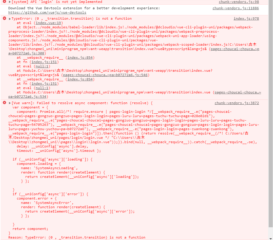 请问我vant项目转成uniapp时chunk-vendors.js报错报了好多是为啥