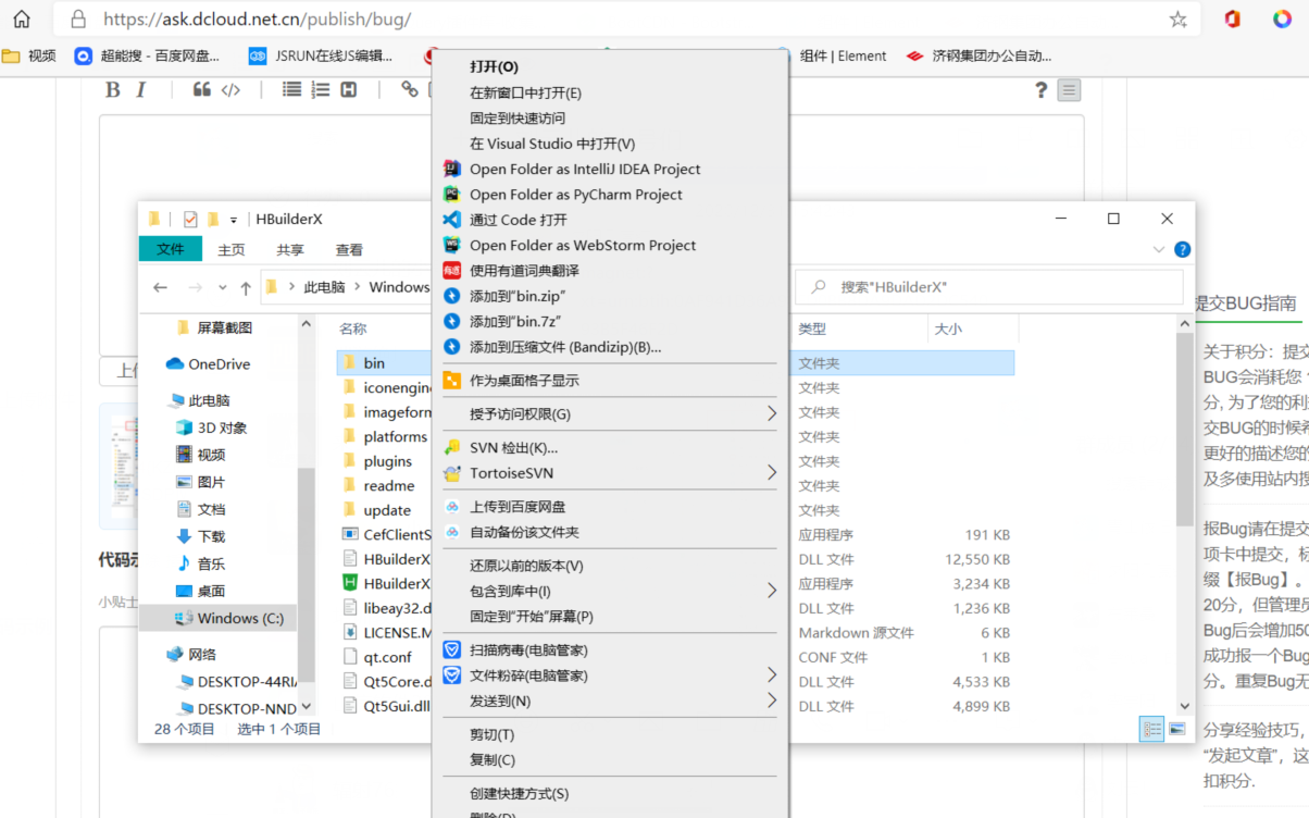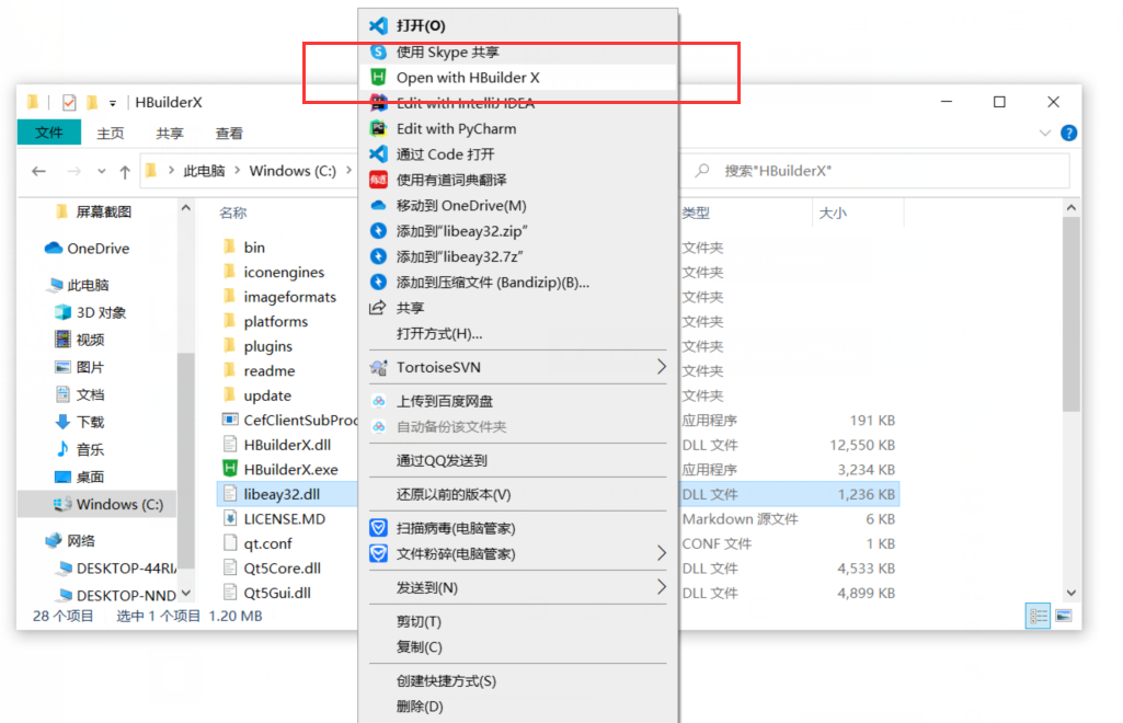 由图可见, 只能右键打开文件通过HX, 却不能右键打开文件夹通过HX.