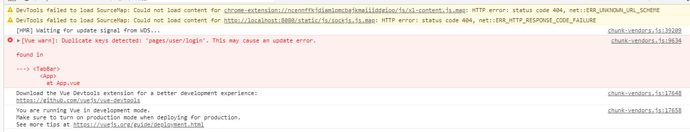 此时每次点击tabbar时都会报错 但是不影响操作