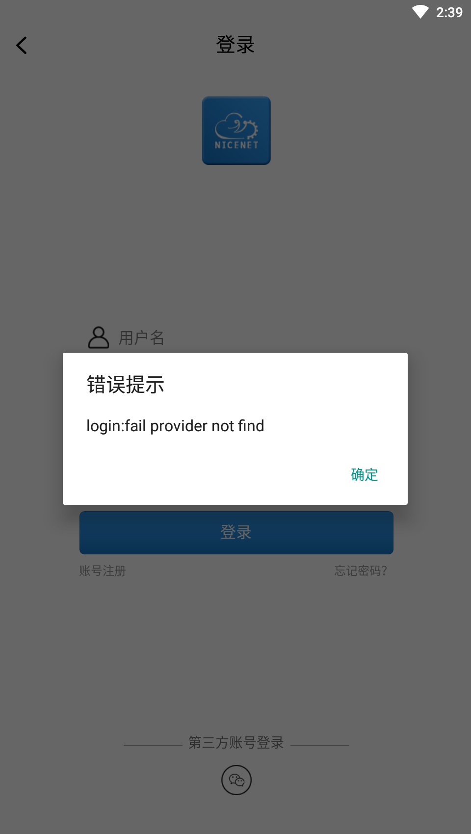 打印出错误信息时login:fail provider not find,百度也没有类似的错误,解决这个问题无从下手。