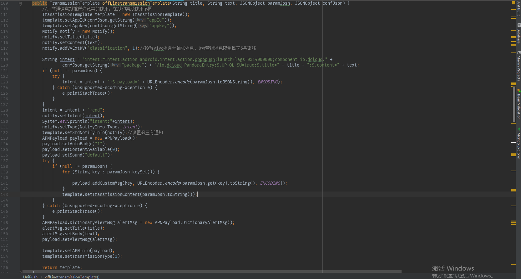 //他们的代码能实现发离线推送,但打开app后不触发click事件,也就不能跳转到指定页面(在uniapp环境下只能这样实现,原生安卓可以获取页面的activity来实现跳转指定页面)