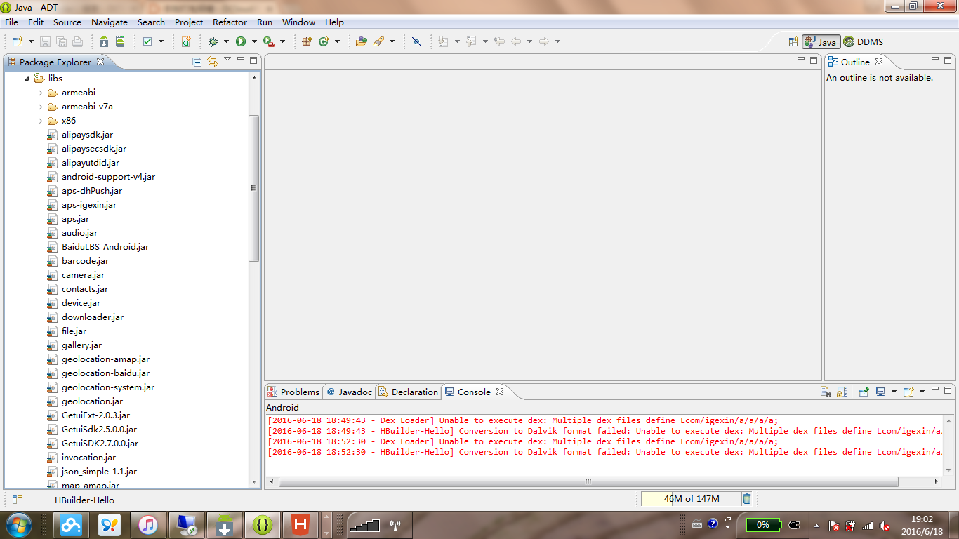 [2014-11-22 02:53:30 - HBuilder-Hello] Conversion to Dalvik format failed: Unable to execute dex: Multiple dex files define Lio/dcloud/feature/aps/APSBootImpl;