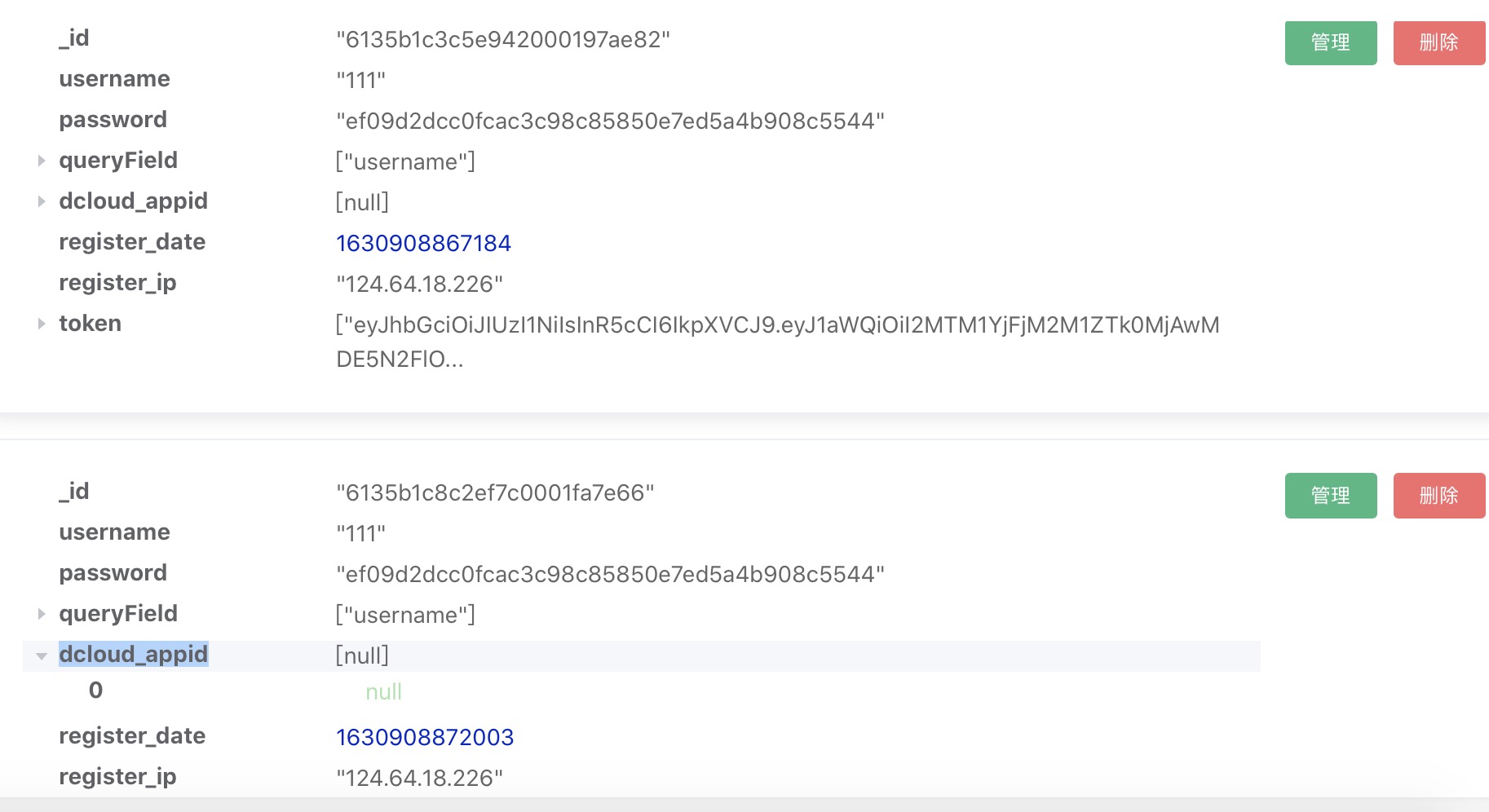 1、云函数url化 用Postman 进行用户注册 输入username和password 请求uniID.registe 没有"自动验证用户名是否与已经注册的用户名重复"