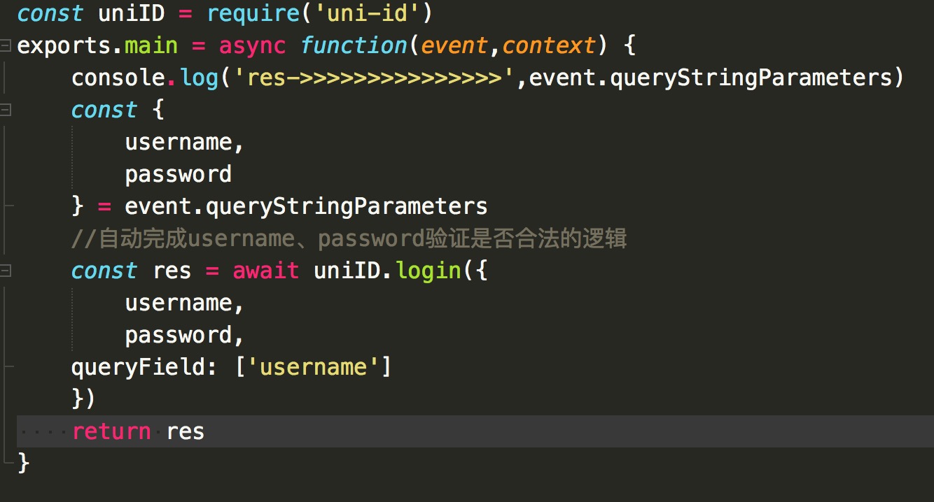 2.云函数url化后 用 用Postman 进行uniID.login登录 提示用户名"用户不存在" 数据库里存在输入username