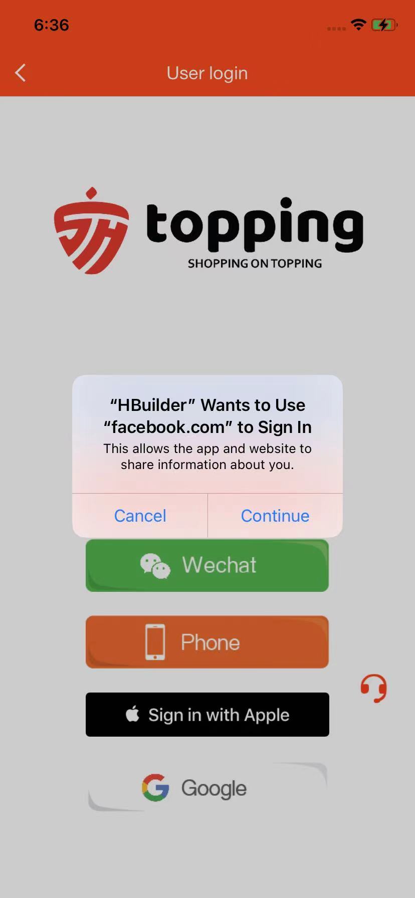 如果是英文环境,使用FACEBOOK和GOOGLE授权登录时在IOS中的提示框提示信息中的APP Name应该为当前应用的名称,目前是“HBuilder”。