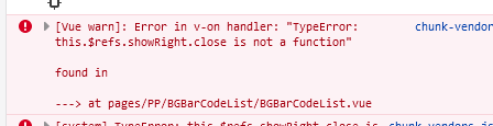 Error in v-on handler: "TypeError: this.$refs.showRight.close is not a function"