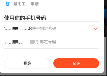 点击图片中的允许按钮,抖音小程序里面可以调起来回调,获取手机号,而快手小程序里面掉不起来。