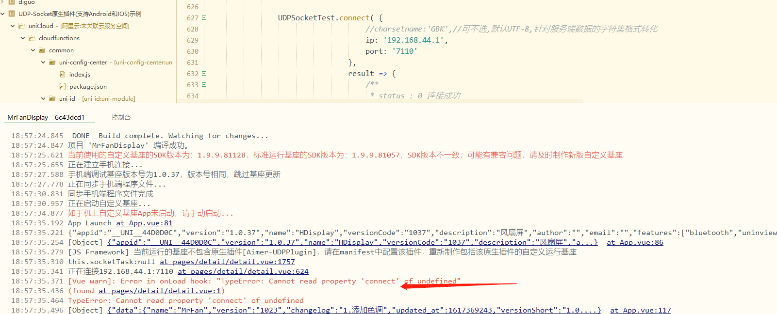 [Vue warn]: Error in onLoad hook: "TypeError: Cannot read property 'connect' of undefined"为什么会报这个错?