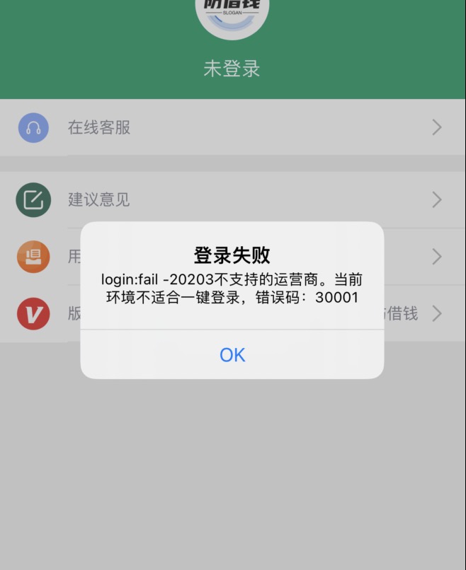 app云打包后提交到App Store审核,他们分别截了一张手机和iPad的截图,在一键登陆那个页面点击登陆不上,是不是因为不支持他们的运营商导致登陆不上,这该怎么处理