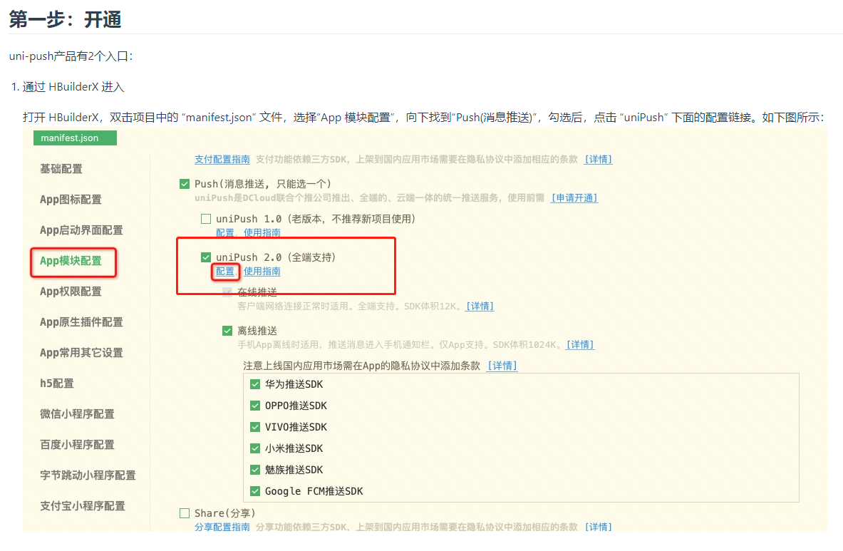 再控制台开通unipush2 的内容,但是打包的时候提示未开通unipush。