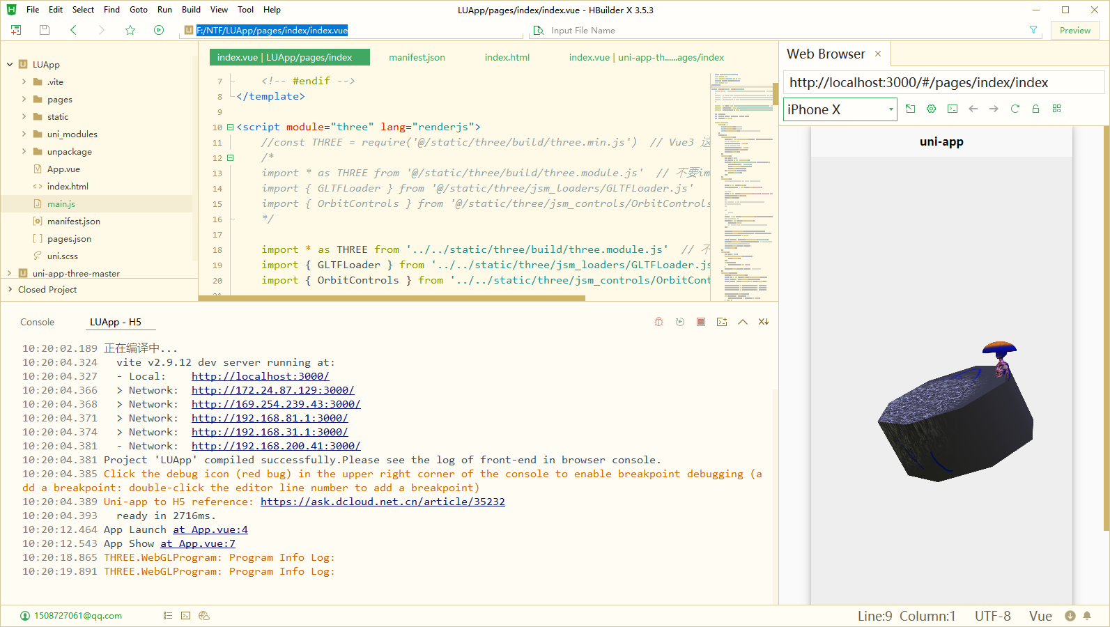 [HBuilder] 10:10:02.293 9 │ } from '/static/three/build/three.module.js';