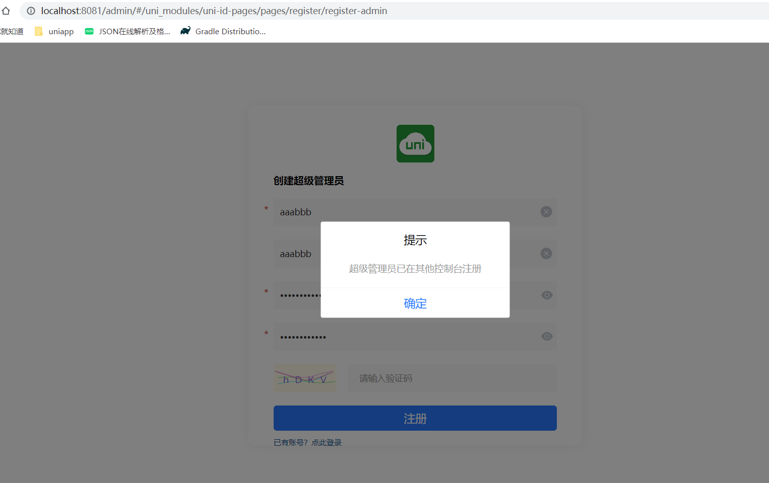 提示我“用户未注册“,但我要注册又提示我“超级管理员已在其他控制台注册”