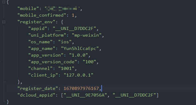 第二个确定是手机号登录的吗?看起来像是微信登录的。 另外注册时可以用注册钩子判断在某端注册自动允许登录另一端 https://uniapp.dcloud.net.cn/uniCloud/uni-id-summary.html#before-register,简单来说就是往dcloud_appid字段插入一项(允许登录添加的这一端 )或直接删除dcloud_appid字段(允许登录所有端)