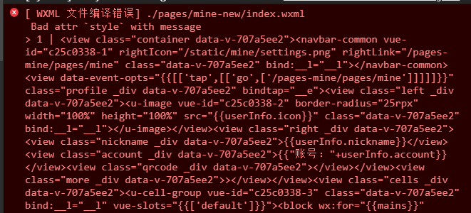 但选择运行到微信小程序,或打包发行微信小程序时,微信开发者工具打开同个项目会报错,报错内容为:WXML 报错 bad attr style