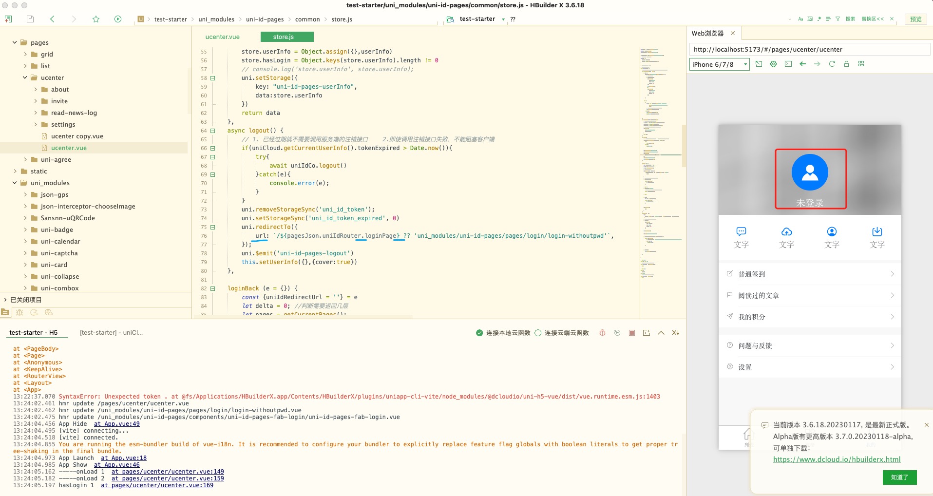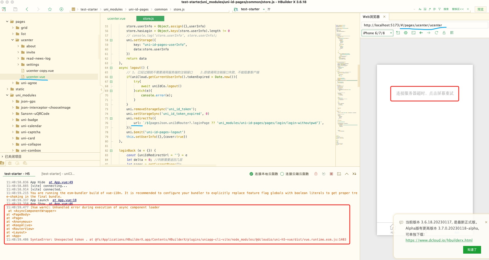 见图1:部署完直接启动, 不能正常显示画面, 原因是store.js 76行代码