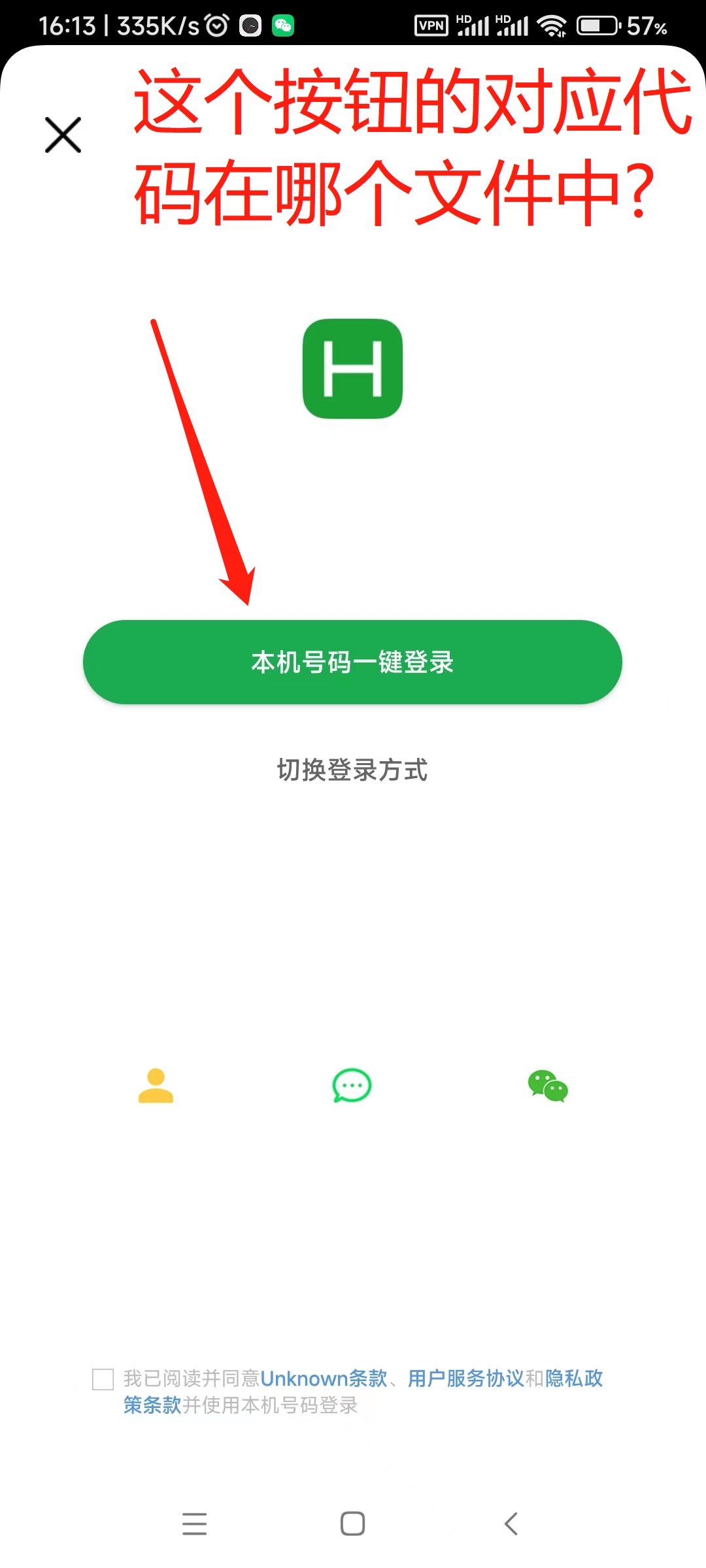 uni-starter 的"一键登录页面"中的"本机号码一键登录"这个按钮的代码写在哪个文件中? 在全项目中搜索"本机号码一键登录"这些字, 0结果, 可调试进入"一键登录页面"后,却会显示"本机号码一键登录"这个按钮, 那这段代码从何而来?