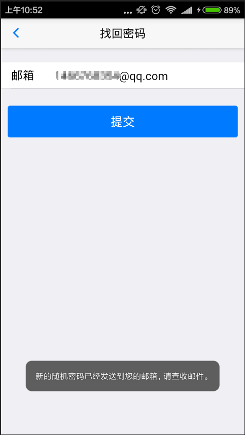 mui登陆模板找回密码填写QQ邮箱之后提交,显示新的随机密码已发送到您的邮箱,但是邮箱始终没有收到邮件